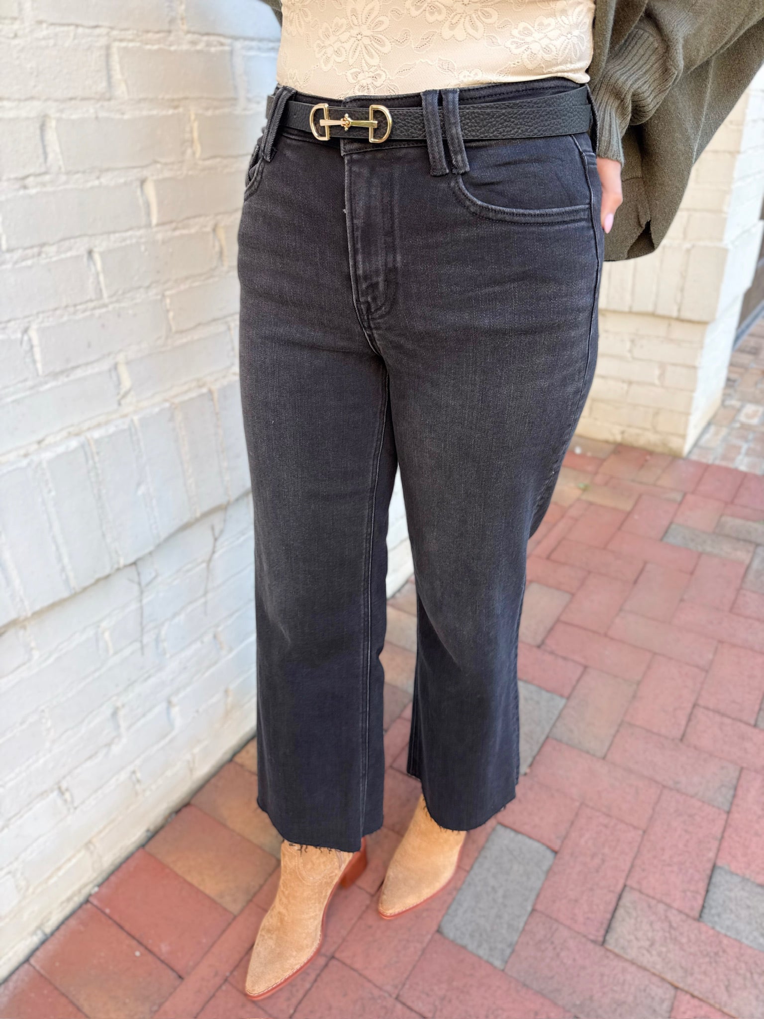 Xavier High Rise Ankle Wide Leg Black Jeans