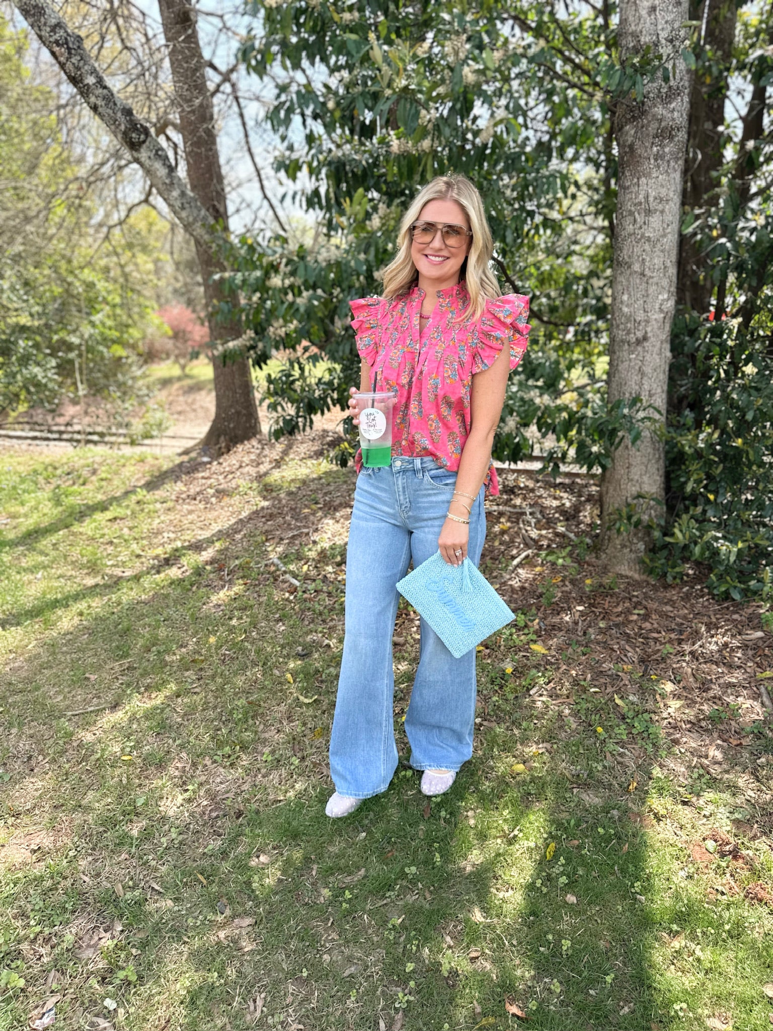 What Can I Do Floral Flutter Sleeve Top