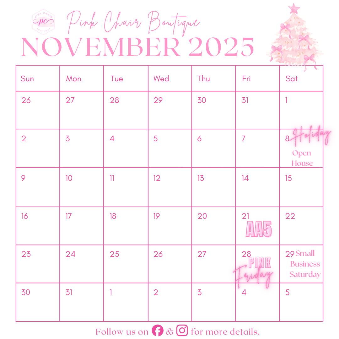 - November 28th: Pink Friday Sale — Our BIGGEST sale of the year! Doors open at 8 AM — enjoy biscuits & coffee while you wait! The first 10 customers get PC Credit, and customers who spend $100+ receive exclusive PC Swag all day long! Plus, even more deals coming soon!